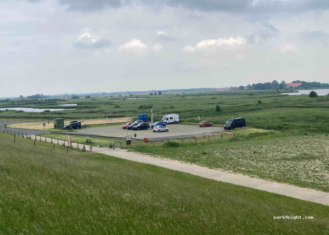 Kostenpflichtig! Toiletten abgesperrt. Vom Parkplatz aus kein Weg am Deich entlang für Hunde erlaubt! Also Spaziergang mit Hund ausgeschlossen. WoMos von 10-18:00 erlaubt.