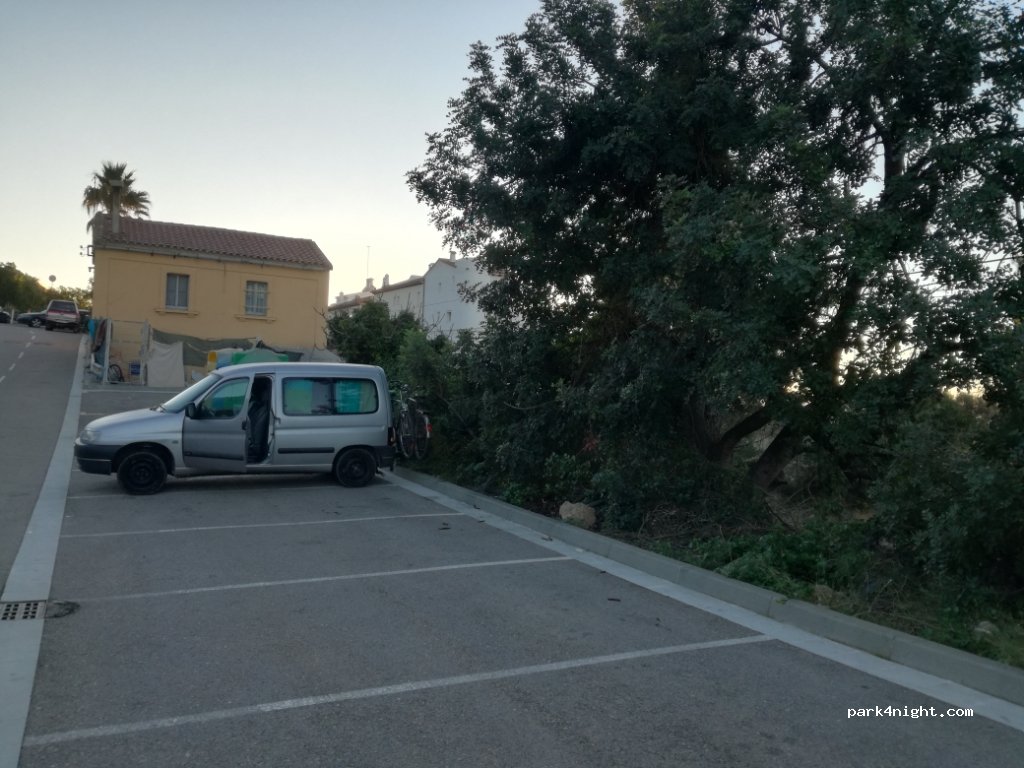 A simple park strip next to the street. Not nice, but practical. It is only 5 minutes to Sitges. I stood here one night with no problem. The train tracks run directly behind the parking lot, but there are no trains at night.