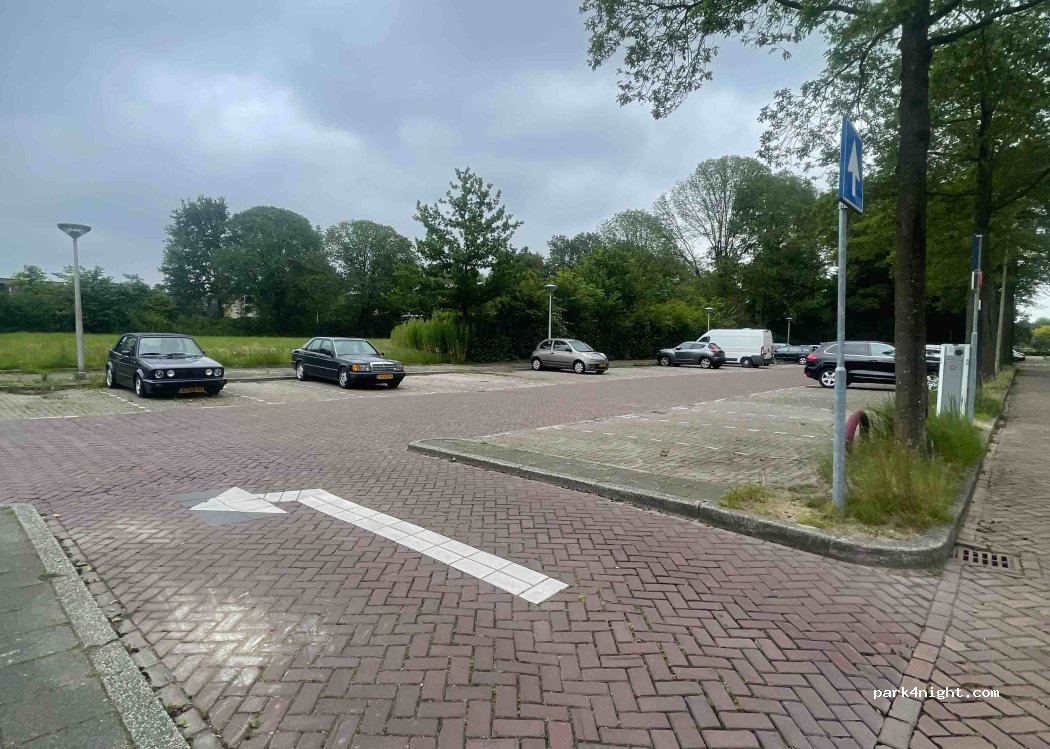 Free parking lot in a residential area. Plenty of spaces a available. The city center of Amsterdam can be reached within 25 min. cycling on a nice route next to a canal. Suitable for campers up to 6 m.