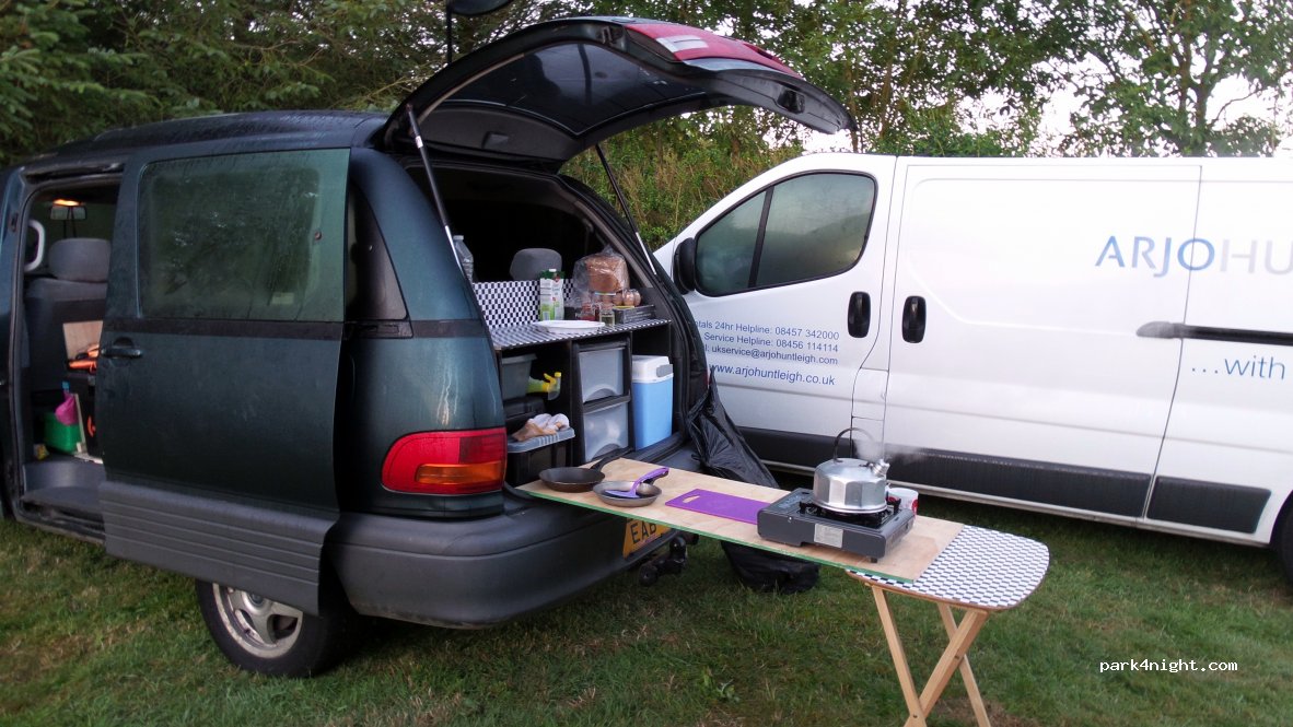 I've stayed here more than once, with no problems at all. The carpark is used by the several holiday homes there. I just parked up next to them, blended in, but I do have a small van.