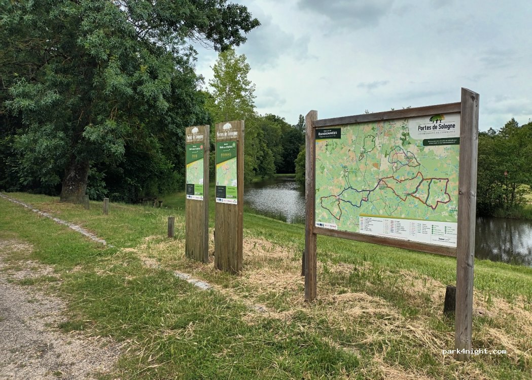 il y a un abribus (non visible sur la photo) qui nous a laissé penser qu'il pourrait y avoir de l'animation le lendemain matin. De plus l'endroit est étroit et en bord de route. Nous sommes allés à La Ferté Saint Cyr (10 km)