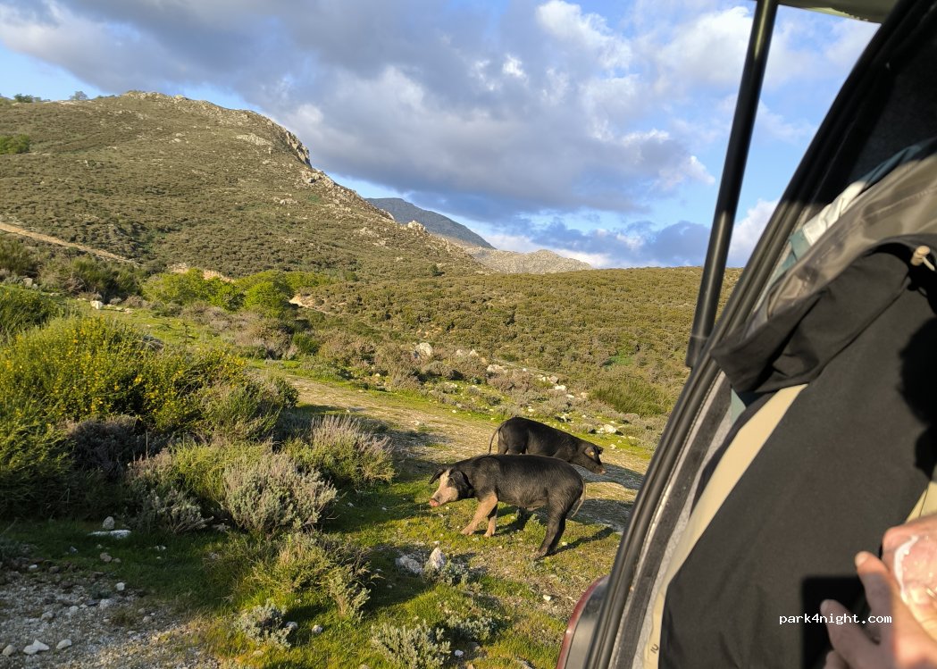 Superbe spot extrêmement calme et avec une très belle vue. Quelques petits cochons sauvages sont passés nous rendre visite au couché du soleil.