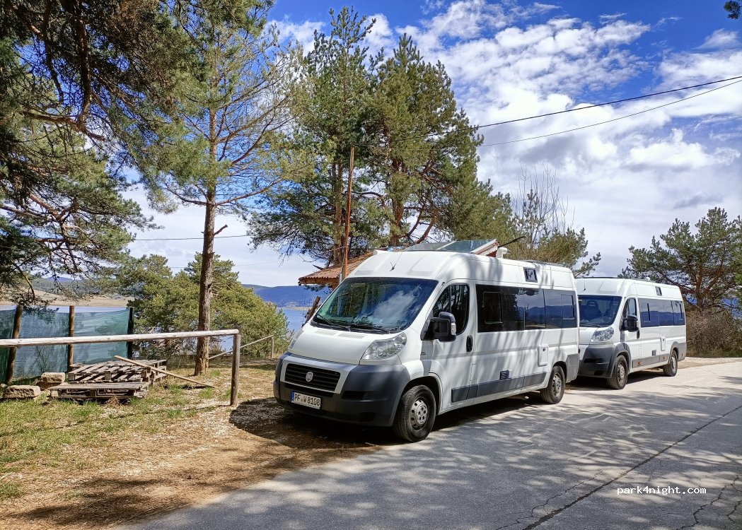 Красивое место, караваны расположены на террасах с видом на водохранилище. Есть персональные выводы электричества и воды (в теплое время года). Хороший WiFi, горячий душ (в любую погоду). Отдельное место слива биотуалета. Стиральная машина (в теплое время года). Владелец Крис очень дружелюбный. В не сезон 11€ за караван с одним человеком. Нужно предварительно созвонится по телефону на сайте.
