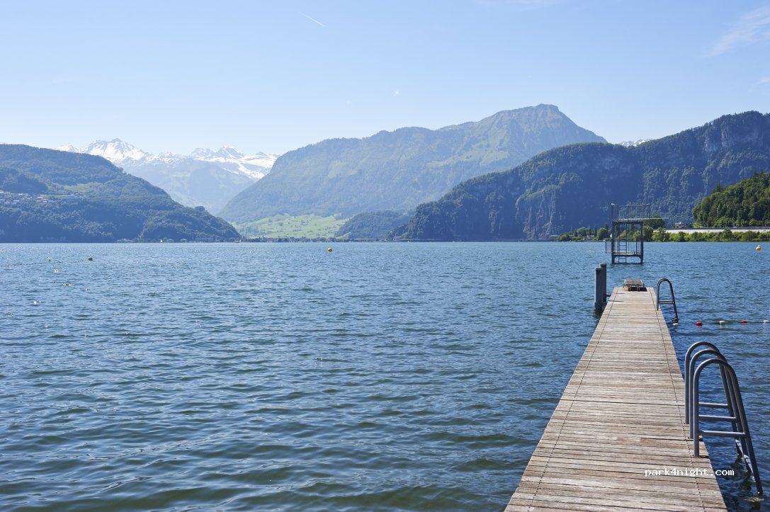 Schöner Campingplatz mit viel Platz, allerdings wenig Vegetation. Nebensaison, daher nicht viel los und das Seebad geschlossen. Dafür in der Umgebung die Seestraße runter tolle Badeplätze am Vier Waldstättersee, sowie viele tolle Wanderrouten. Sanitäranlagen sauber und kostenloses WiFi, außerdem bekommt man gratis Busfahrkarten (Linie 20 bis Luzern). Ca 48 CHF für 1 Nacht mit Van und 2 Personen.