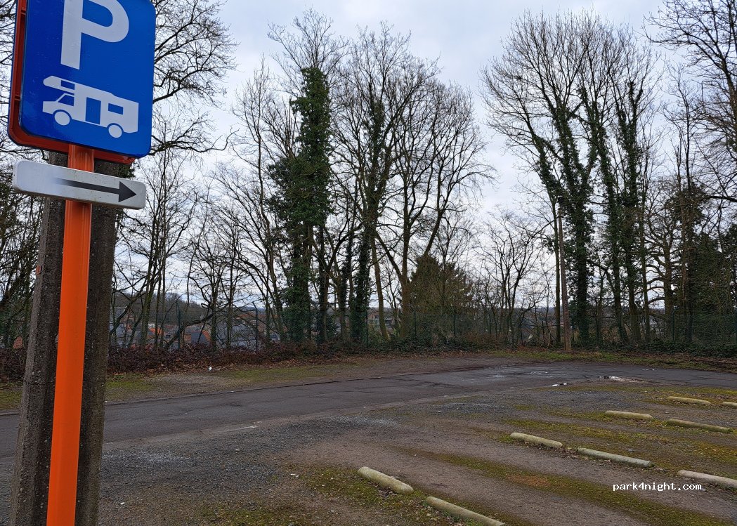 Parking de la citadelle de Diest. Emplacements camping-car désignés au fond du parking. Aucun service.