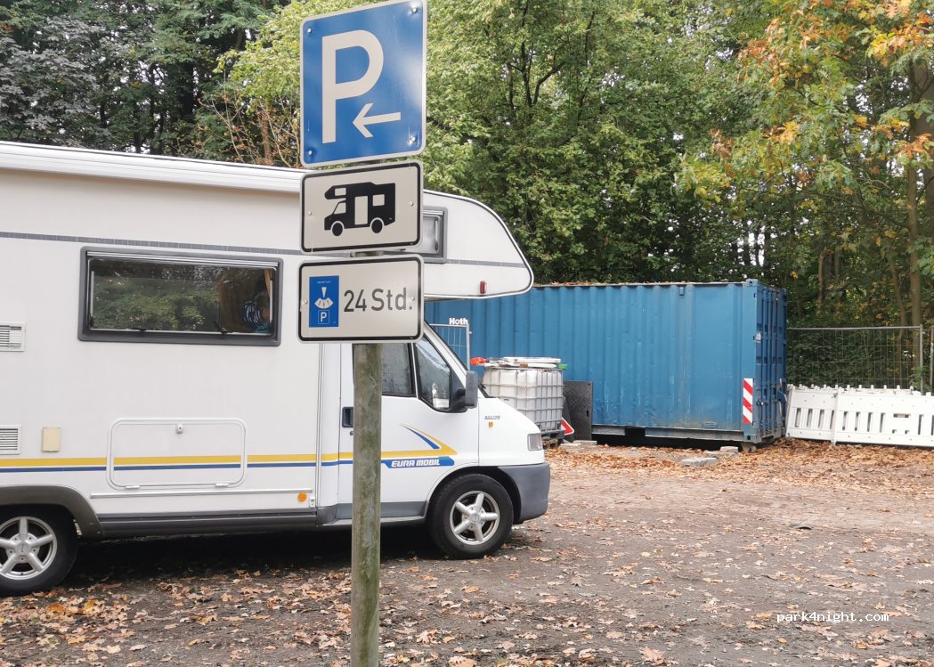 Großer Parkplatz direkt Stadtpark. Extra Bereich für Womos. Mit Parkscheibe 24h möglich. Wir standen dort mit 3 anderen Campern. Morgens war reger Betrieb - Spaziergänger, Hundehalter etc die alle ebenfalls den Parkplatz genutzt haben. Schöner Park mit Spielplatz, See und Kiosk. Bushaltestelle 3min entfernt: 25 min in die Innenstadt. Leider keine Ver-/Entsorgungsmöglichkeiten. Wir kommen wieder.