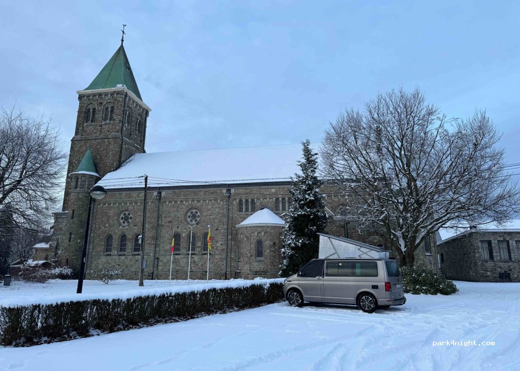 Kirchenparkplatz entlang der Straße, ruhiger Ort für eine Nacht ... kleiner Kinderspielplatz daneben