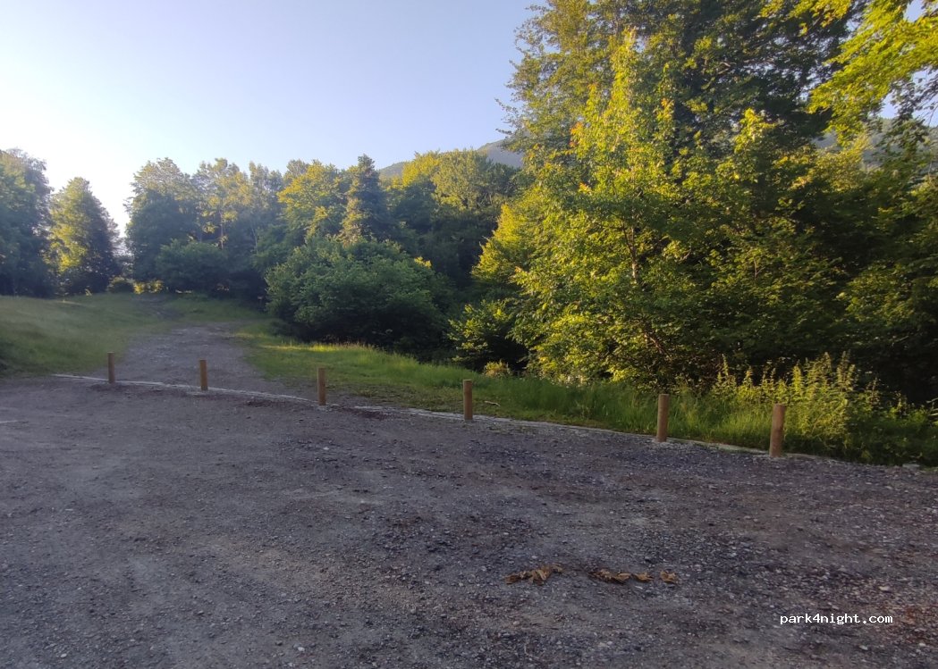 Endroit calme pour passer la nuit en bordure de piste forestière . On entend juste les voitures arriver pour le départ de randonnée. Pas de services mais réveil avec le chant des oiseaux. Piste carrossable en bon état. Pas de risques particuliers pour van et fourgon.