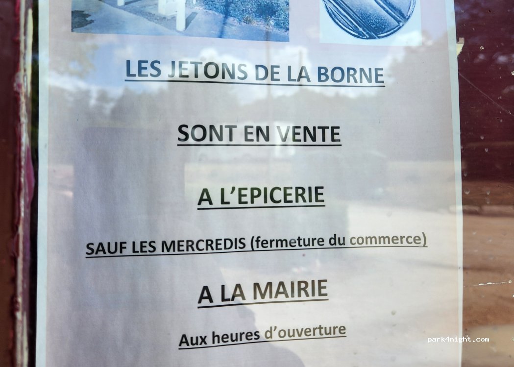 Sommes revenus hier pour vidange. contrairement à ce qui est indiqué, le boulanger ne vend pas de jetons...tant pis pour lui, de toutes façons il ne s est pas montré aimable...