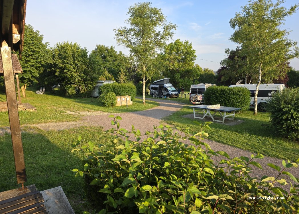 Small welcoming municipal campsite, overhanging pitches. Motorhome service area under construction. Near the sources of the Aube, the Tille, visit of Auberive. A very beautiful place!
