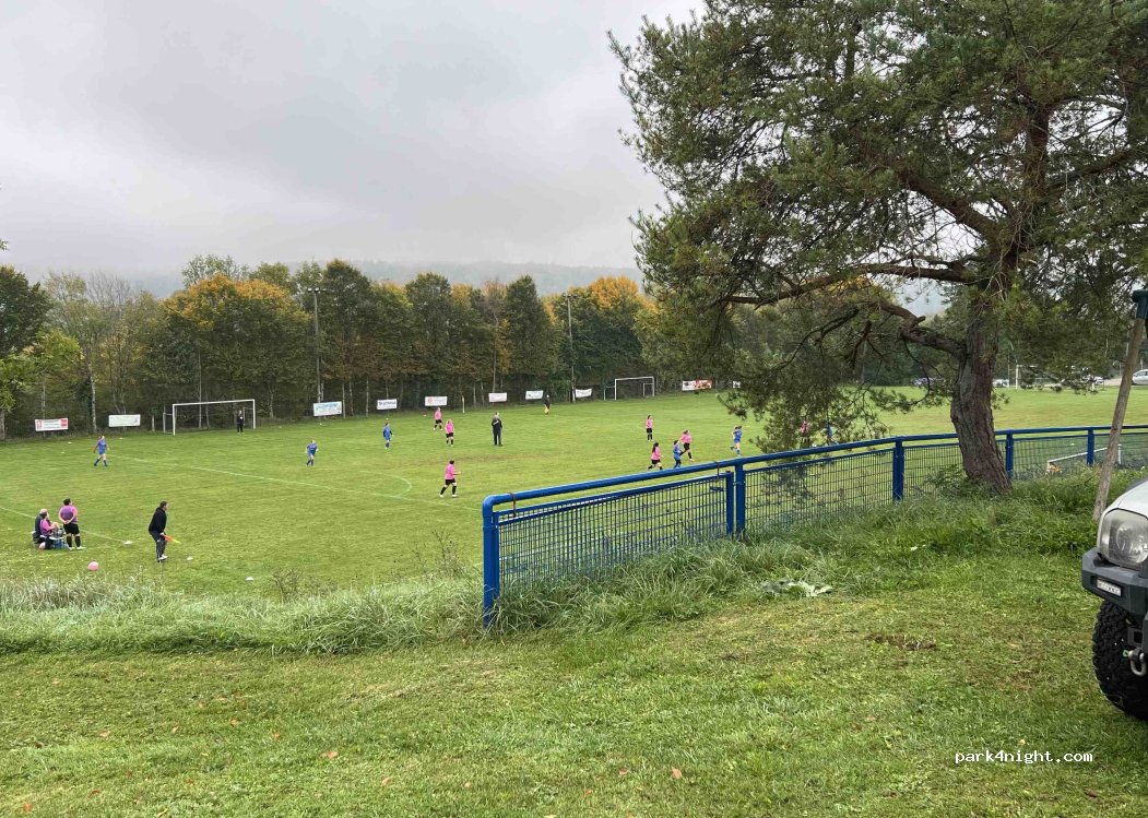 Aan de rand van een sportveld, maar totaal geen overlast ervaren. Het is een fijne plek om 1 of 2 nachten te verblijven. Voor de prijs hoef je het niet te laten. We waren 14 euro kwijt voor 2 personen voor 2 nachten.
