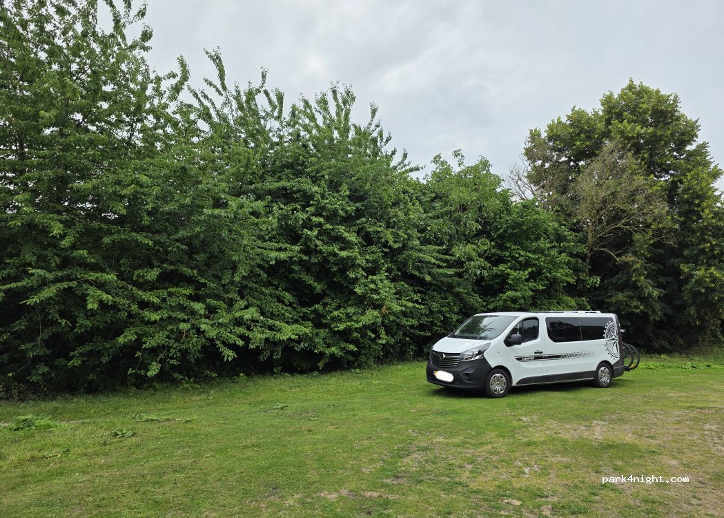 lovely and quite location a few walkers and cyclists. We were the only people there all night. Easy access for my 7.5 m long motorhome. Enough parking for several vans if parked correctly.
