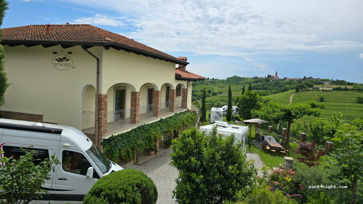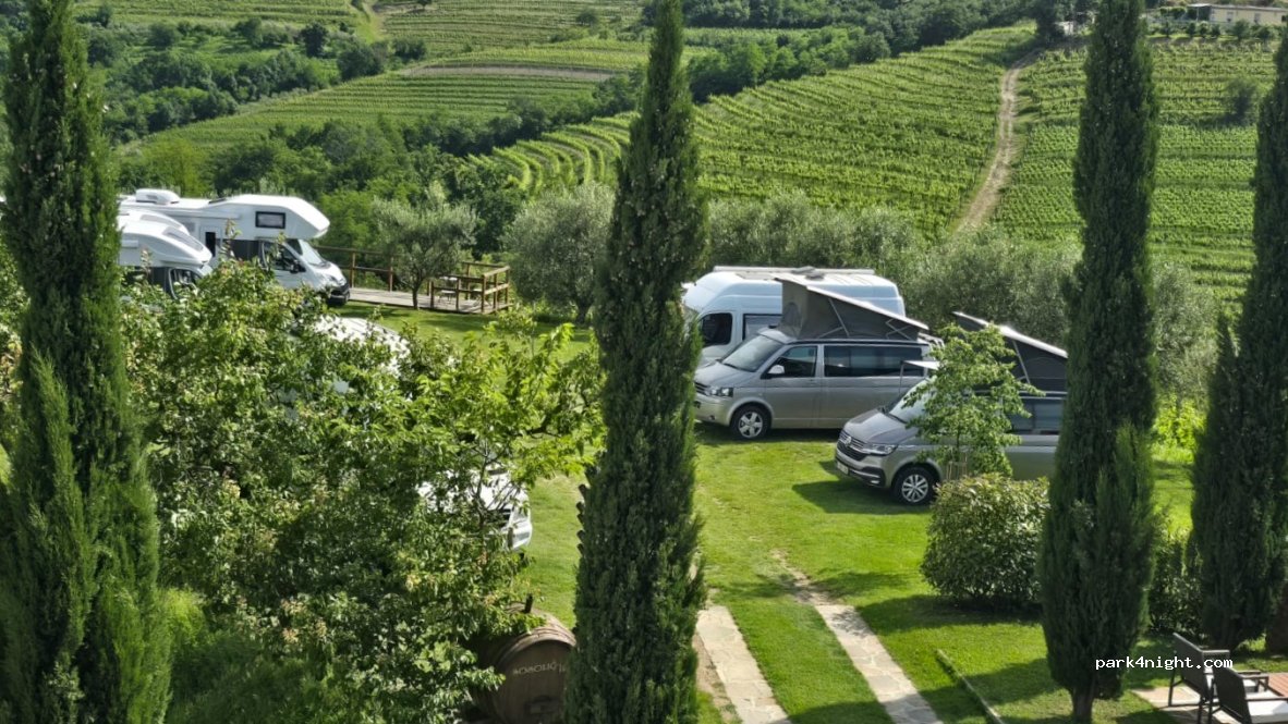 Absolutely stunning place. Parking for free on a small hill surrounded by vineyards. Place for several campers. No need to make reservation. Around 6pm wine tasting starts. You can buy very good wine produced by the hosts. Highly recommend.