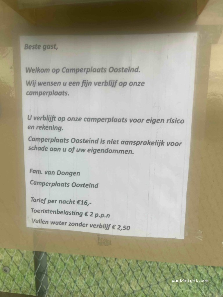 Para quem está a caminho de Amsterdão este é um ótimo lugar para parar, em meio às árvores e fazendas a 300mts da rodovia, lugar calmo seguro e bem organizado, não tem casa de banho, mas tem água, energia e lugar para descartar as águas sujas, o pagamento é feito no valor que o coração mandar, não é um valor fixo! recomendo!
