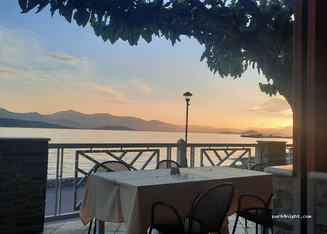 Great. Absolutely fantastic village with a main street along the water. Very quiet with only Greeks at the end of June. Several restaurants nearby. The parking was free for us and belongs to one of the restaurants. They didn't speak a word of English and the menu was complicated. But the location and the food were very good and authentic. There are absolutely no showers or toilets as it says.