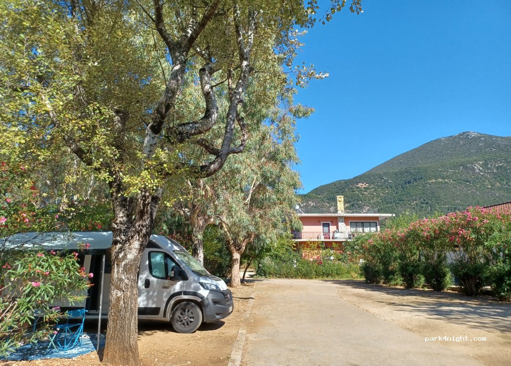 Odlična senca. Ogromno parcel, ki niso nikoli polno zasedene. Vse za oskrbo avtodoma, uporaba pralnega stroja 5€/45min. Dokaj velik bazen. Restavracija ima malce dražje pivo 6€/0.5L . Avtodom in 2 osebi 32€/dan. Mestece Sami 10 min hoje. Dobre restavracije in ne predrage. Zelo zadovoljni.