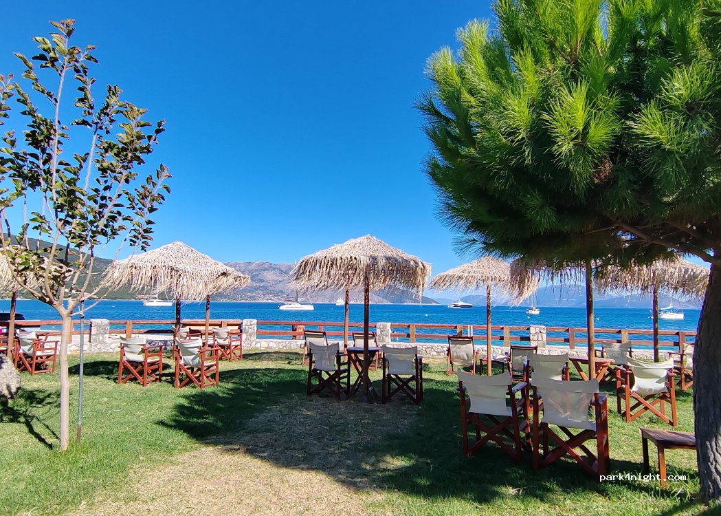 Wir standen eine Woche Anfang Oktober direkt am Zaun zum Meer, sehr schöne Lage. In Sami gute Restaurants.
