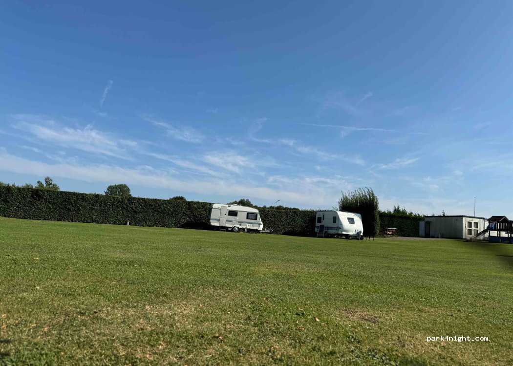 Mini campeggio molto ordinato nella fattoria. Il campeggio si trova appena fuori dal villaggio di Hoeven. Nel villaggio c'è un supermercato, Etos, un bancomat, una farmacia, diversi ristoranti, Action e Kruidvat. Al campeggio puoi stare in un luogo molto riservato, riparato tra le siepi o sul prato. Entrambe le opzioni sono facili da fare. Tutto è molto ben tenuto e pulito. C'è un campo separato (separato) nel campeggio dove risiedono i lavoratori stagionali delle serre. Hanno servizi igienici separati e sono infatti assenti durante il giorno. Non ci ha dato fastidio. I servizi igienici per gli ospiti del campeggio sono molto puliti e adatti ai disabili. Doccia con 50 centesimi per 8 minuti di acqua calda e 20 centesimi per 1 secchio di acqua tiepida per i piatti. Sono inoltre disponibili un trampolino, un'altalena e una pista da bowling. Per ora, devi ancora pagare in contanti, ma il proprietario sta valutando le opzioni digitali per questo.