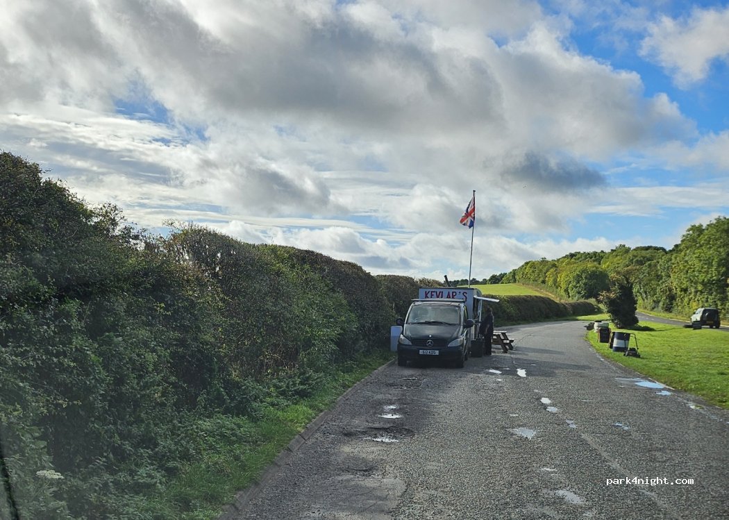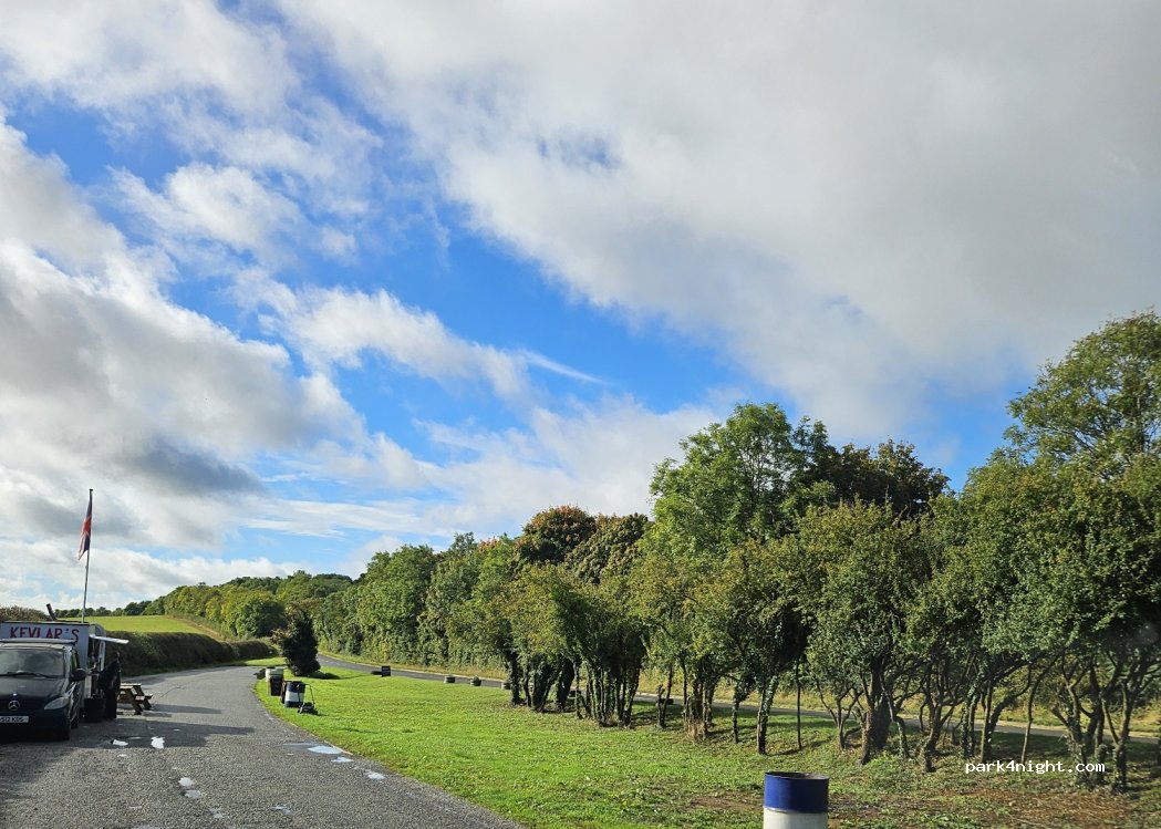 Good lay-by with trees and bushes separating it from busy road. Snack van from 8am.