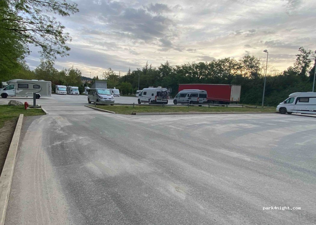 Emplacements pour poids lourds à l'origine, quelques kékés venu faire les zouaves en scooter (sans pot d'échappement) jusqu'à environ 23h30, sinon acceptable pour une nuitée. Aire à améliorer (ça c'est pour la commune). Merci quand même.