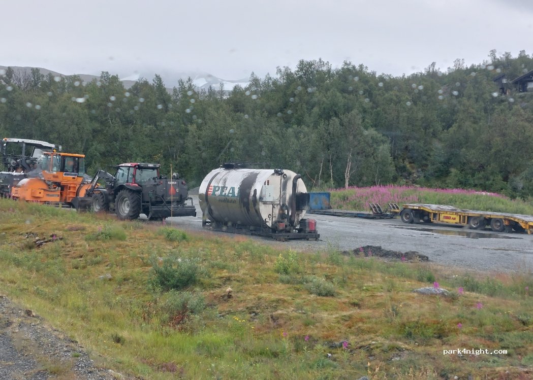 Large parking lot right by the lake. 1km from the E15. The E258 is closed most of the year. Check in advance whether the gravel road is open. The road has only one lane, serving both directions. There are few passing places. Be prepared to reverse along a long, winding stretch.