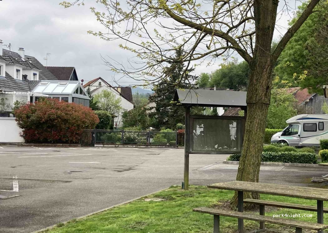 parking 3 places borne de services fonctionne bien , ombragées... commerces de proximités supérette très bien achalandé,rayon boucherie,boulangerie,brasserie..des Alsaciens sympa Village avec pistes cyclables, châteaux, musée , balades toutou.. église chapelle à visiter un bémol nuit, difficile si pas habitué aux cloches tous les quarts d'heure,Un grand MERCI à la Commune pour ce parking..