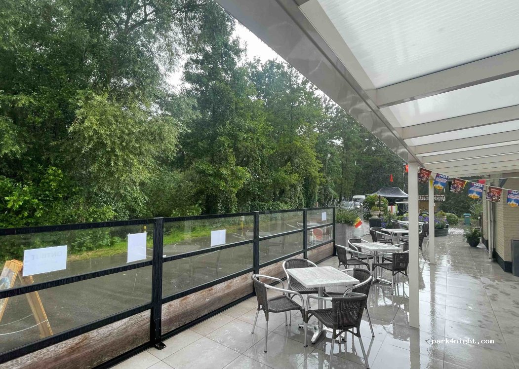 Quite strange place where many things seem a bit odd. The area is for fixed mobile homes and the campsite is a field nearby the dumpsters, lit up like a construction site. Unfortunately there were a lot of cigaret buds in the grass at the campsite. The electricity supply is very limited, with only two outlet boxes for the entire area. The toilet and bath facilities is in a newly build building, nice and neat, but you’ll have to bring your own toilet paper, soap and towel for hands. You’ll get one key, which got one of us locked in, as we both had to use the toilet. They advertise free WiFi at the cafe, but it doesn’t reach the porch.