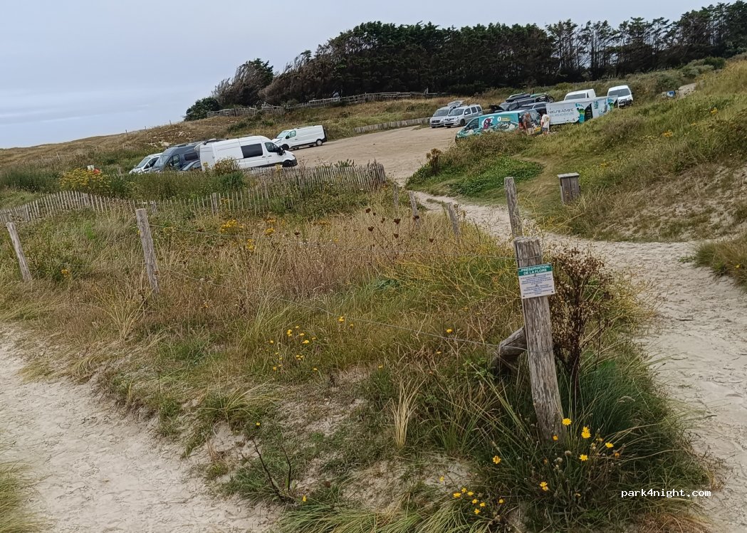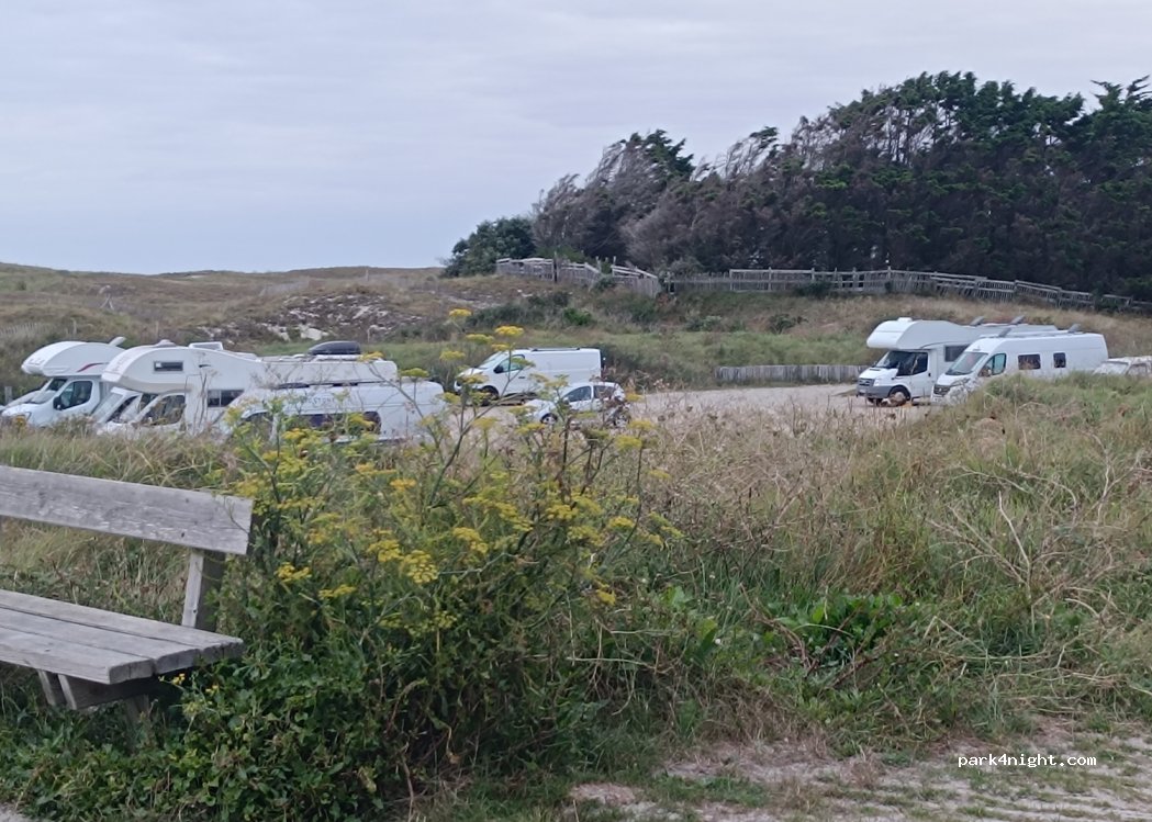 parcking très bien mais attention entre très serré je suis passé juste avec mon 7,40 et 2,32 de large sinon entre par la sortie si vous pouvez pas mal de place mais parcontre le week-end énormément de voiture parceque c'est un spot pour kitesurf et autre donc parcking plein et j'ai du attendre que certains parte pour pouvoir sortir de ma place sinon assez belle plage nuit calme pas tros de reseau