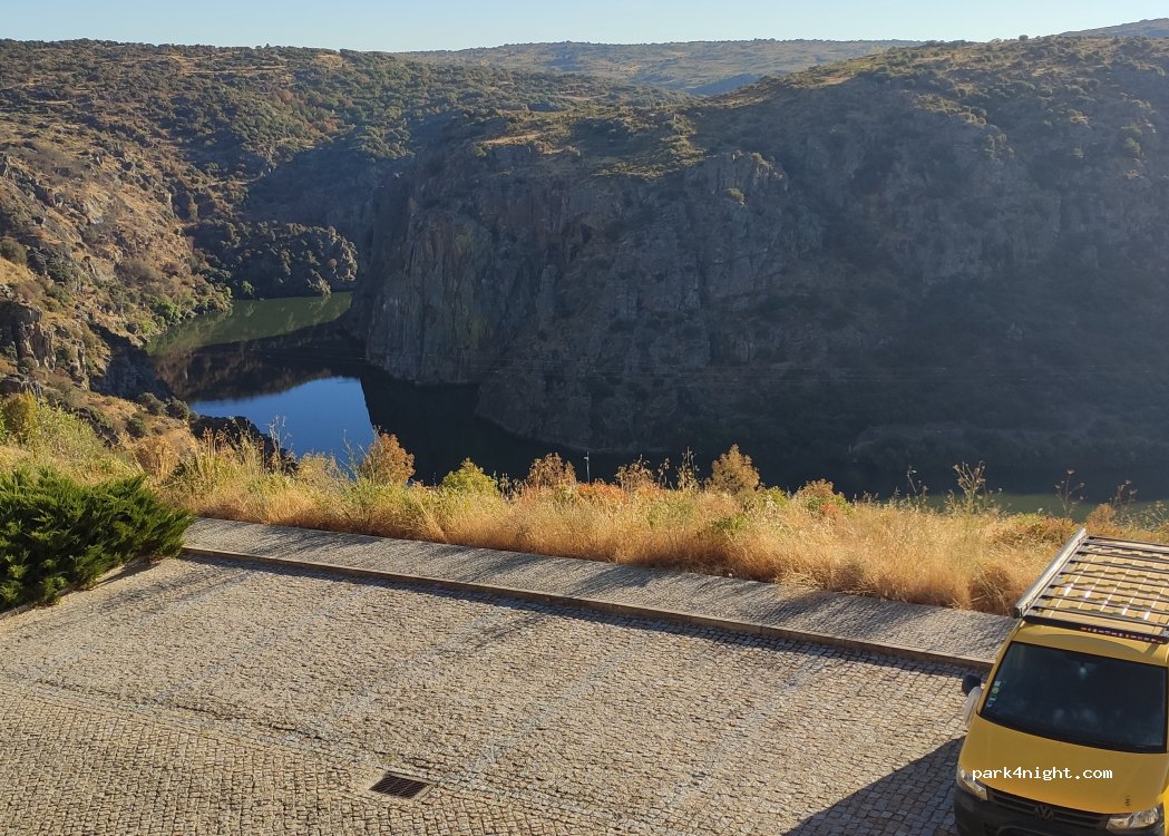 Voor langere campers, meer dan 6 mtr is het te krap. Dan moet je dwars op de parkeerplaats staan. Toen wij er waren was het erg rustig en hebben we dat dus gedaan. Stadje is aardig, maar niet zo bijzonder als de info doet geloven. Prachtig uitzicht over de Douro.