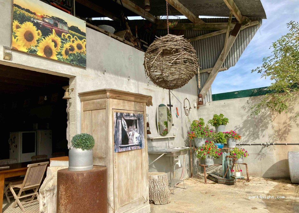 Très bon accueil par ARRIEN et RENA, qui nous ont proposé de nous servir gratuitement en cerises. Des légumes de saisons sont également offert sur un présentoir .Des tables avec bancs sont disposés sur le camping et pouvant être déplacés selon notre souhait. Dans la grange, un local pittoresque avec four micro ondes, fauteuils etc…est mis à disposition des campeurs pour se retrouver. C’est super.