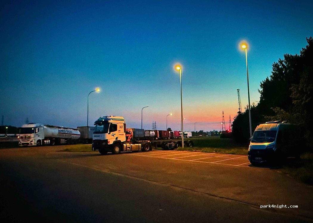 Hier kann man ganz ordentlich für eine Nacht stehen. Es sind auch viele LKWs dort. Aber trotzdem schönen Ausblick auf den Hafen und vorbeifahrende Schiffe. Platz ist auch für größere Wohnmobile erreichbar.