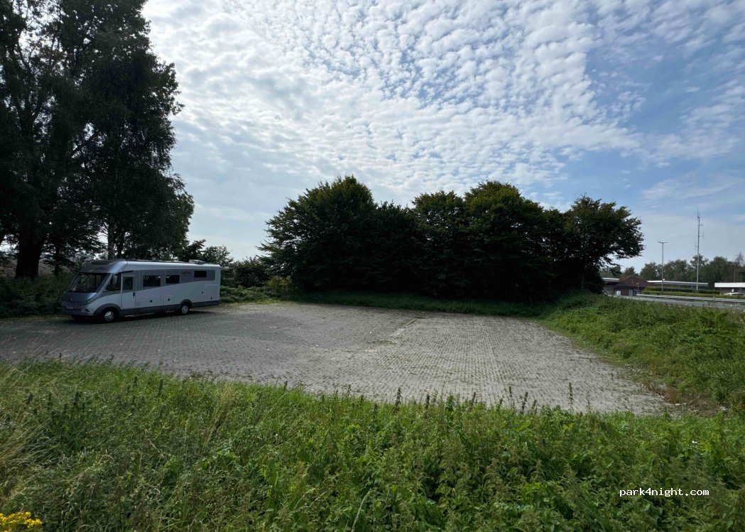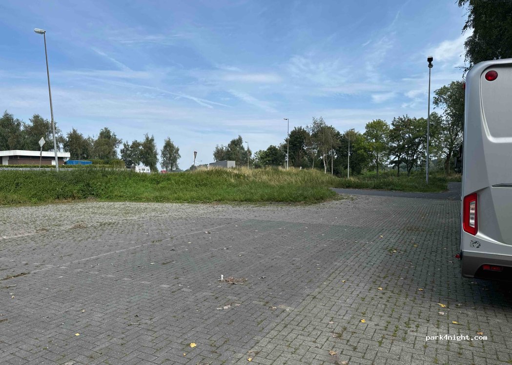 Naast de parkeerplaats voor bussen trucks is een plek voor campers. Weinig last van verkeersgeluid.