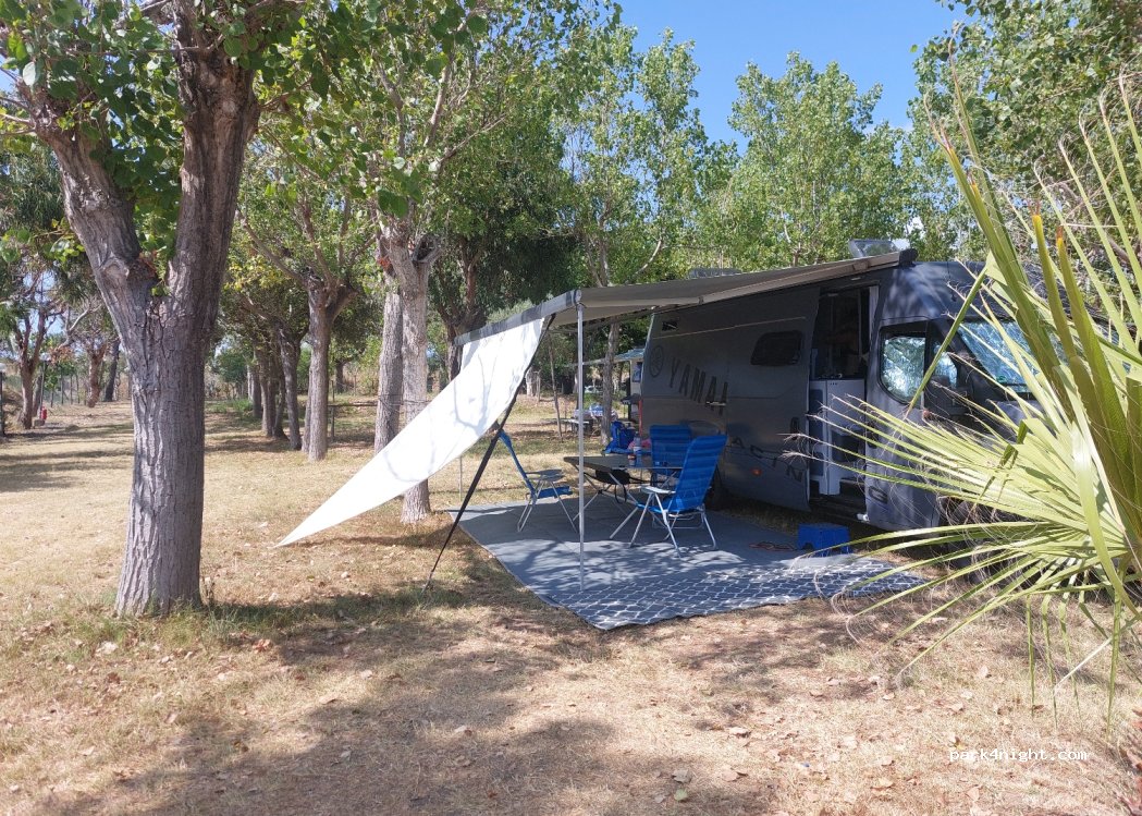Sehr schöner Platz direkt hinter einer Strandpromenade. Großzügige Parzellen unter Bäumen mit reichlich Schatten. Die Strandbar gehört zum Platz und hat alles was das Cocktailherz begehrt. Wir sind in der Mittagspause angereist und konnten trotzdem einchecken! Kommunikation geht nur auf italienisch oder mit Händen und Füßen (englisch Fehlanzeige).