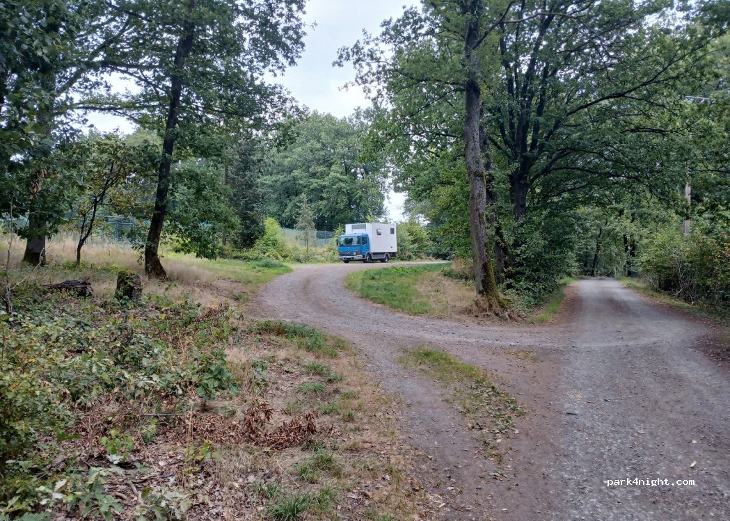 Hiking car park in a quiet location. level floor with rubbish bin. Access allowed. Located next to a tennis court that is no longer in use, very quiet location. Restaurants and shops in the next town.