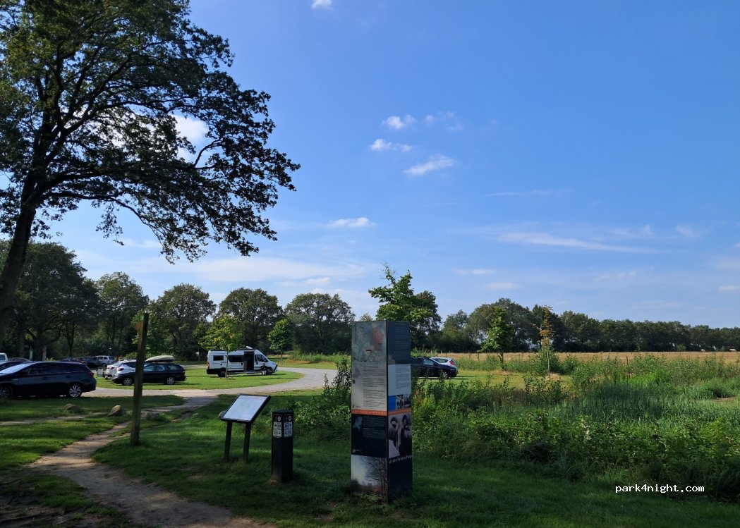 Zeer rustig gelegen grote parkeerplaats, midden in natuur. Startpunt voor wandel en fietsroutes. Druk tot ca 20:30 uur (mooi weer). Schaapskooi aanwezig (schapen komen op woensdag en zondag om 16 uur de kooi) en wolwinkeltje. verder niets Geen afvalbakken dus neem alles mee, heb respect voor de natuur. Geen lantarenpalen dus echt donker.