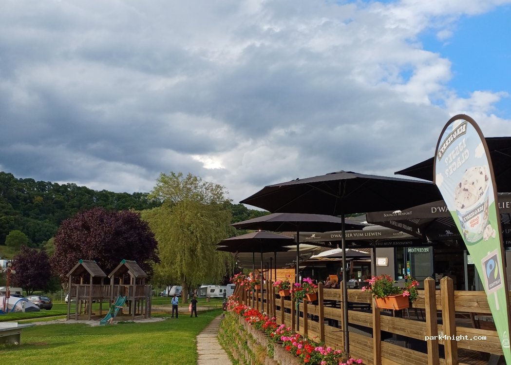 Camping aan de rivier met restaurant op balkon inclusief winkeltje.
