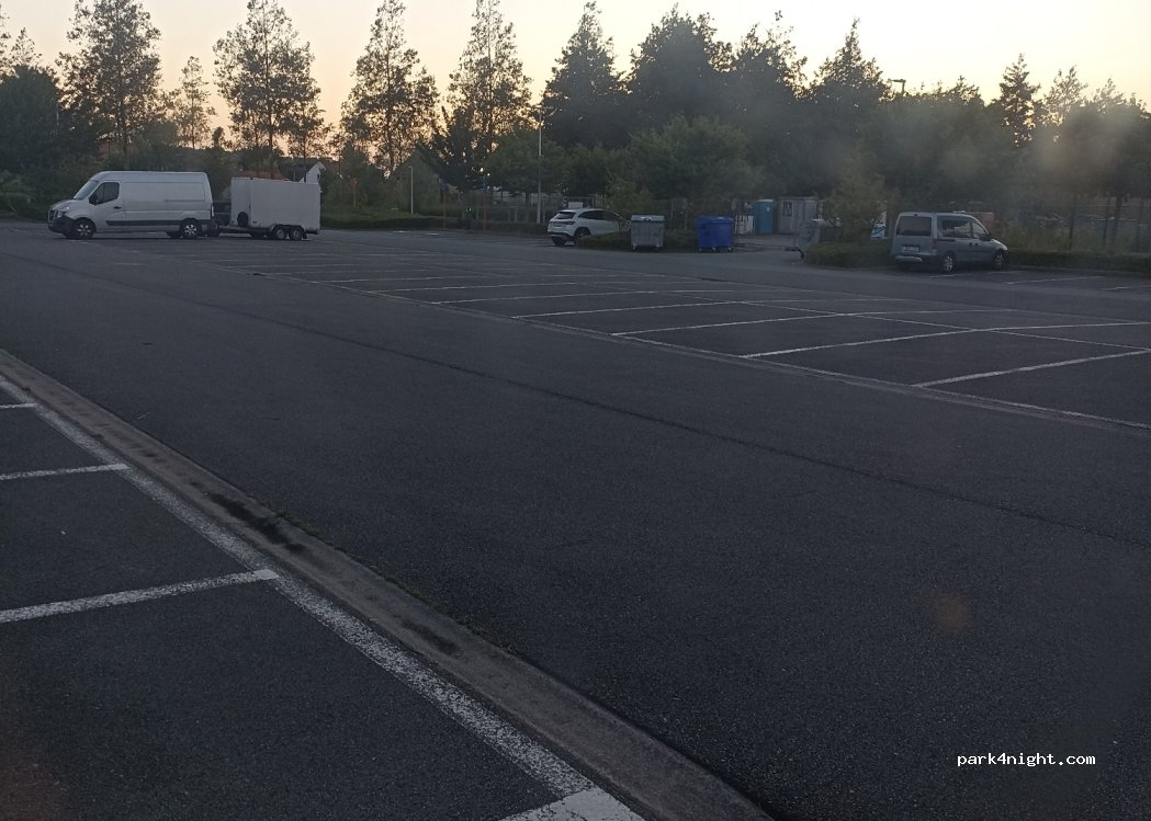 Zeer rustige overnachting. Aankomst op dinsdagavond bij zonsondergang. Diverse sportvelden worden nog gebruikt, maar dat hoor je heel weinig van. Ook bij het verlaten van de parking zijn de sporters heel rustig. 's-Morgens blijft de parking leeg. Drie campers staan hier blijkbaar langdurig geparkeerd. Prima plek voor een overnachting.