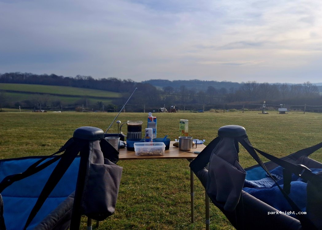 Mooie camping, prachtig uitzicht. Er is enkel het geluid van het verkeer, en dat is niet teveel. £25 voor campervan in honestybox.