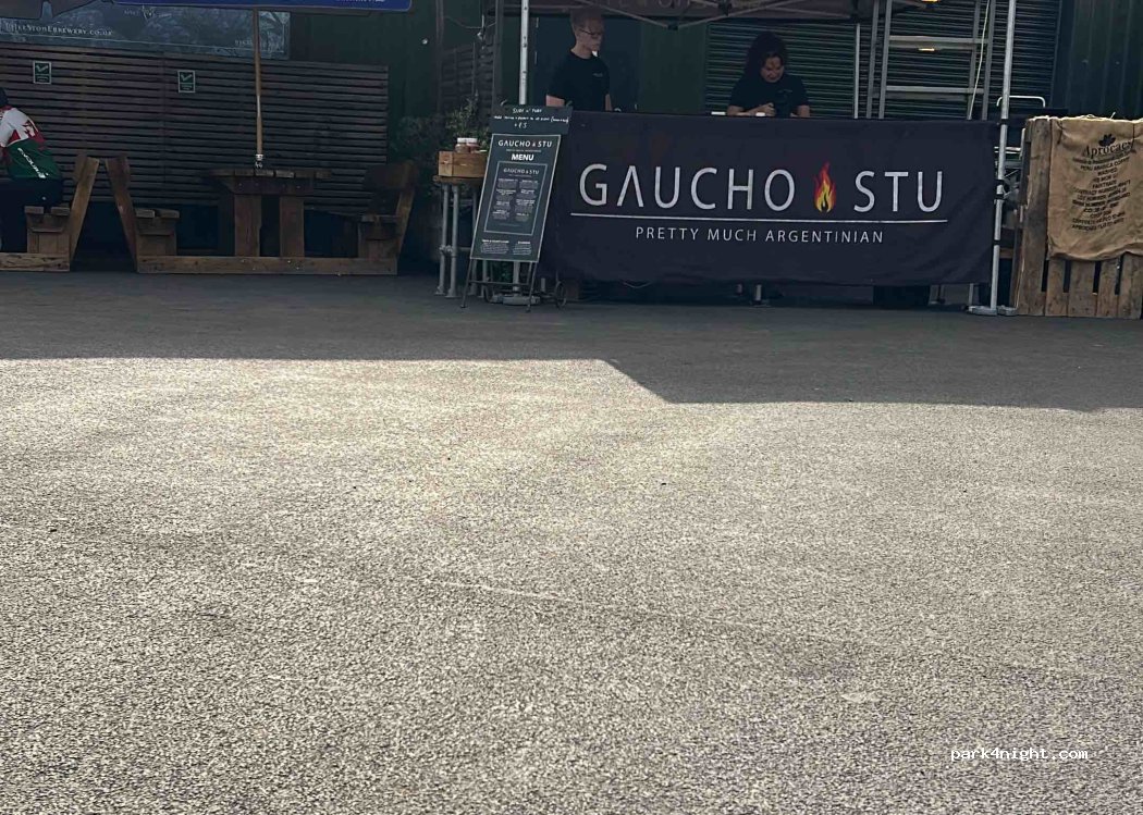 I know this place just up road is milestones brewery great place and street food well worth a visit I’d stay on grass across from brewery