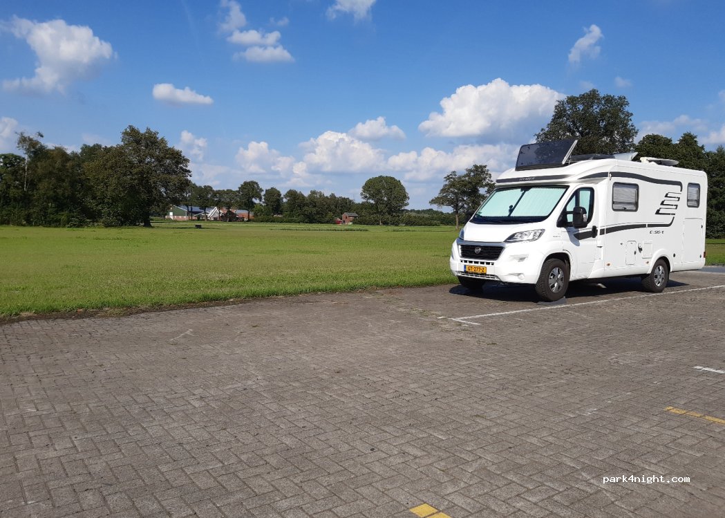 Rustige parkeerplaats, achter bloemenwinkel aan de rand van een weiland. Prima vertrekpunt van diverse fietsroutes. Diverse restaurants aanwezig. Rustige nacht gehad