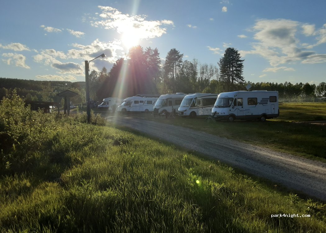 Toller Stellplatz direkt am Fluss, von der örtlichen Gemeinde gegen freiwilligen Obulus zur Verfügung gestellt. Trockentoilette, Frischwasser, Tische/Bänke und Feuerstellen sowie Grill vorhanden. Zum Fluss hin abfallend, mit Auffahrkeilen aber okay. Landstraße außen zu hören, nachts aber ruhig. Möglichkeit Tische und Stühle rauszustellen. Man darf hier auch angeln.