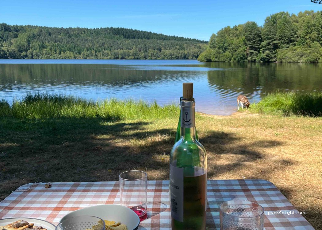 une nuit calme, 8.22€ pour une personne, un van, deux chiens gratuits, vu sur le lac baignade possible. une très sympathique dame passe pour le paiement en fin de journée (CB ok). privilégiez l'emplacement 20 pour être seul (le plus au fond)