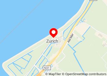 Aan de voet van de dijk twee ruime parkeerplekken in het rustige dorpje Zurich.