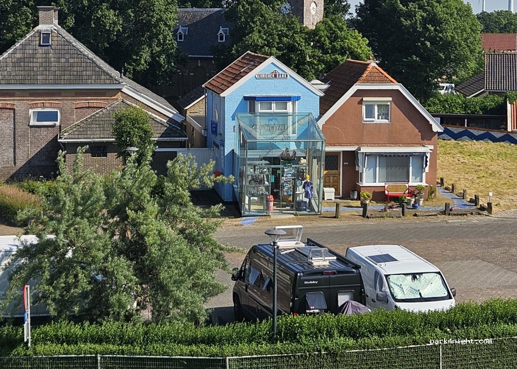 Een prima slaapplek, want het is er slaperig en stil. Leuk om even over de dijk te wandelen. Aardige beheerder aan de overkant bij de Zurich Bank.