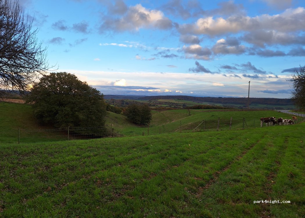 Geweldige omgeving, dicht bij de weg maar 's avonds geen verkeer, 's ochtends een beetje. Het uitzicht is ontspannend, de grond is vlak en er is een picknicktafel