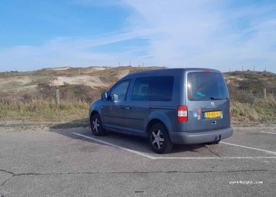 Zeer grote parkeerplaats, midden in de duinen gelegen, helaas maar tot 21.00 uur toegestaan en geen overnachtingsmogelijkheid.