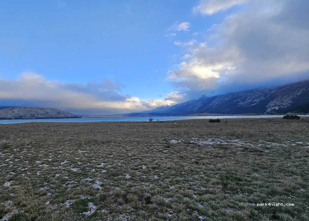 Wunderschöne Aussicht auf den See und Bosniens höchsten Berg. Man kann wandern jedoch nicht baden im See. Es ist alles da, was nötig ist. Saubere Toilette, Wasser und wer's braucht auch Strom. Eine kleine Küche mit Spüle, Kocher, Grill und Kühlschrank. und sogar ne Dusche. Bei uns war's tagsüber recht windig. Nachts legte sich das dann, so daß es auch im Dachzelt gut zu schlafen war.