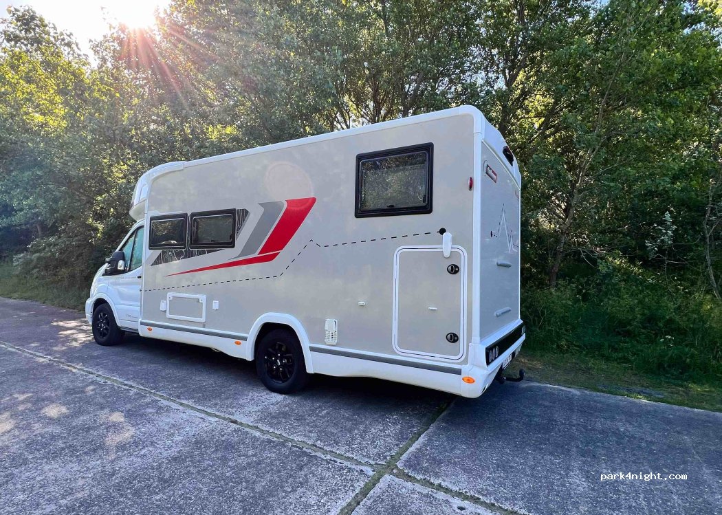 19-20 mei 2024 Rustig, aan de kant van de weg, geen verkeer s'nachts of toch niet opgemerkt. Vlak. Wandelafstand van het hondenstrand. Meerdere Mobi's.