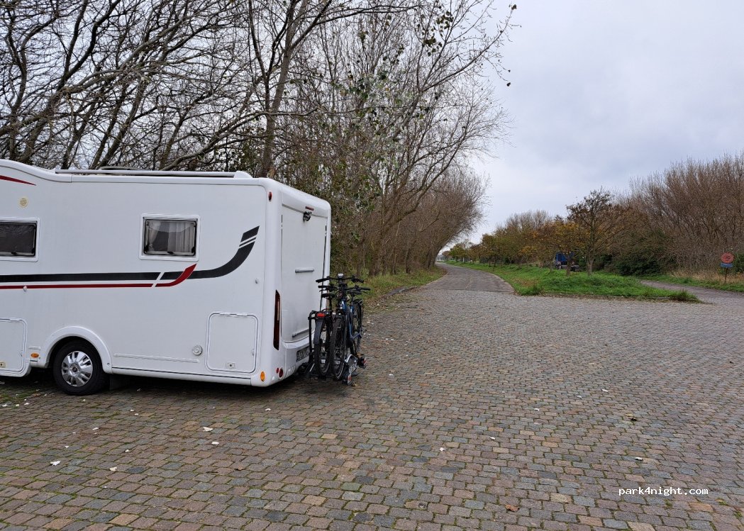 Prima plek! Je staat er aan de zijkant van de weg. En dat kan aan weerskanten. Een kant heeft overhangende boomtakken en de andere kant niet. Daar hebben wij gestaan… s avonds is t er heel rustig, je staat dichtbij het strand en ook een frietzaak is snel gevonden. Een goede plek om te overnachten voorafgaand aan een overtocht naar de UK. Of na terugkomst.