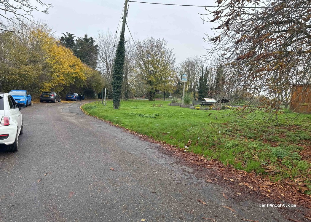 Lay-by on a relatively quiet road, some low overhanging trees but perfect apart from that, also near public footpaths so get those early morning walks, it's below a flight path but it’s not a busy but might wake you up occasionally. Lovely spot.